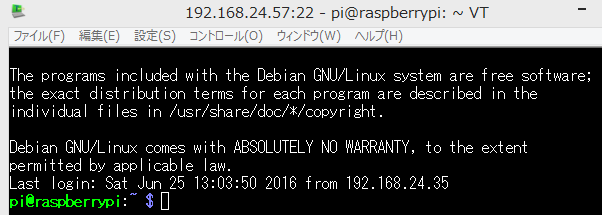 デフォルトではユーザー名がpi、パスワードがraspberryである