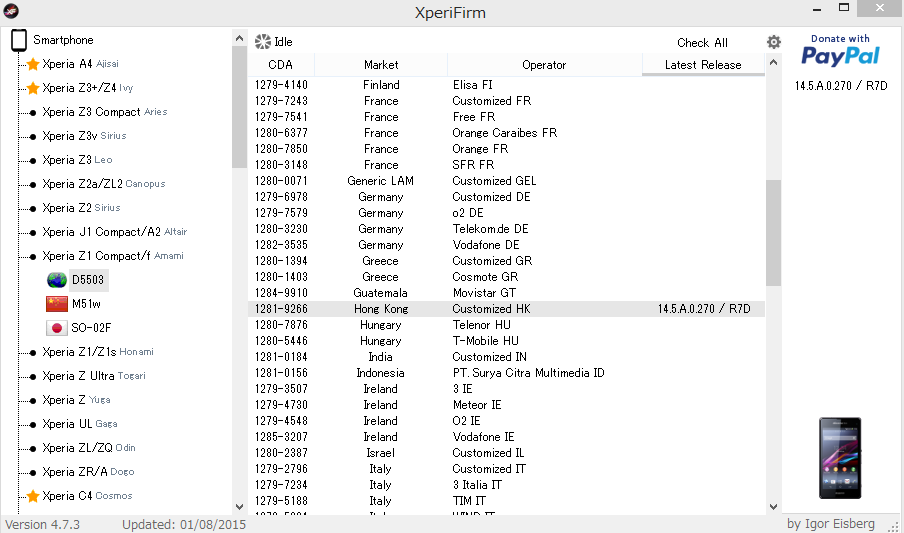 するとXperiFirmというソフトが起動する